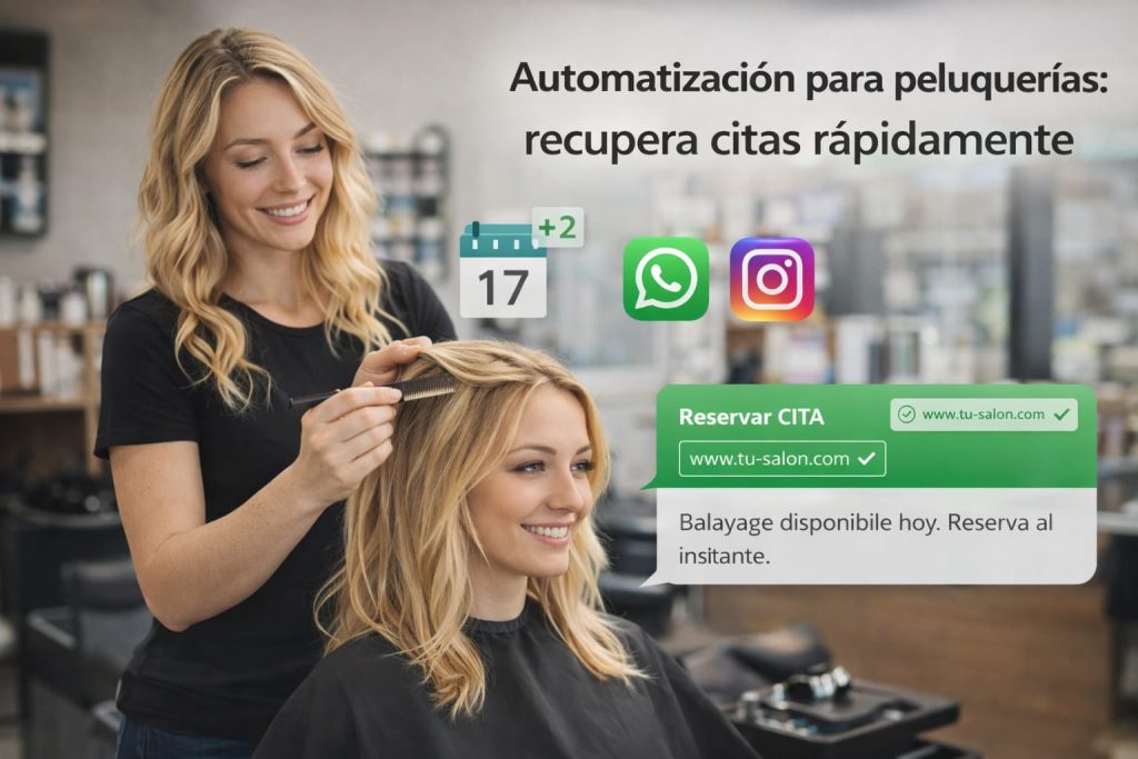La automatización para peluquerías no sirve solo para ahorrar tiempo. Sirve para algo más importante: llenar huecos en la agenda sin depender de contestar mensajes todo el día. Si hoy pierdes citas por responder tarde, confirmar a mano o perseguir clientes que no reservan, este artículo te muestra cómo resolverlo con procesos simples y prácticos. […]