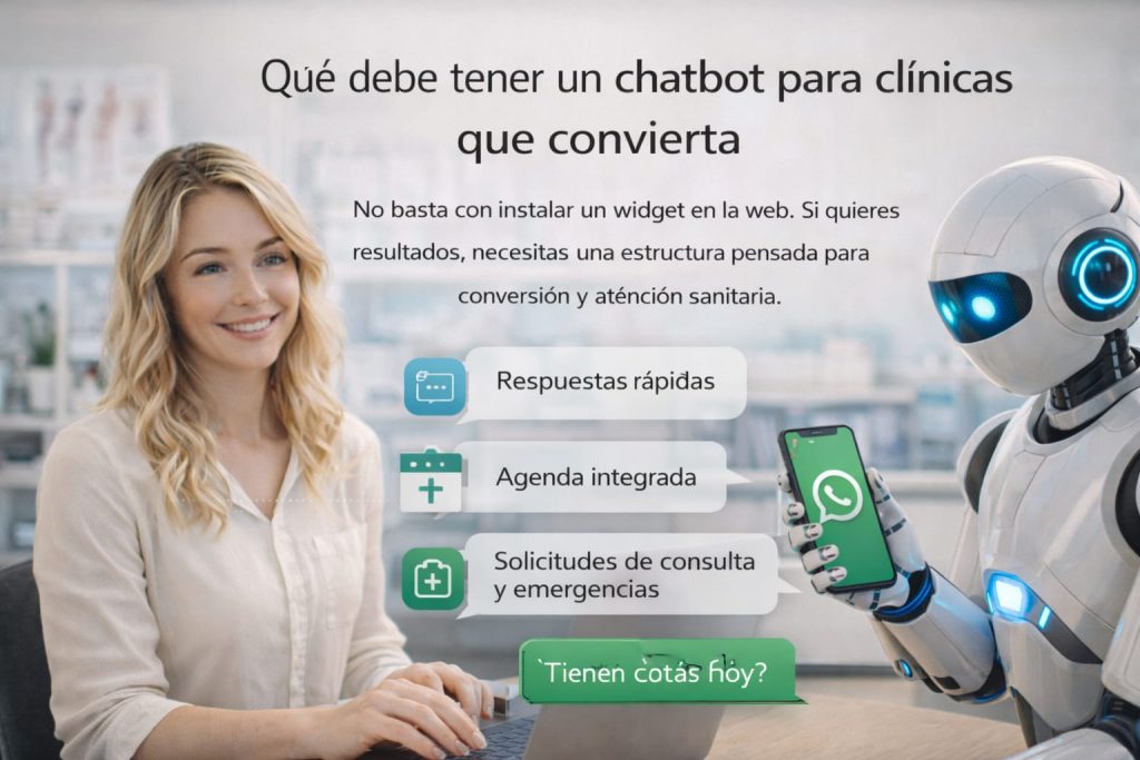 Un chatbot para clínicas puede ayudarte a responder consultas, filtrar pacientes y agendar citas sin depender del teléfono. Si tu equipo pierde tiempo contestando lo mismo una y otra vez, este artículo te muestra cómo automatizar ese proceso sin fricción. Por qué un chatbot para clínicas mejora la captación Muchos pacientes no llaman. Prefieren escribir […]